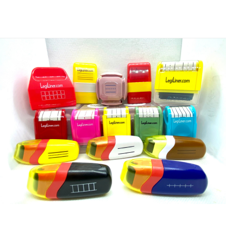 All LegiLiners are self-inking, rolling stamps for writing, music or math. They come pre-inked and will last 6 months or more depending on how much you use them.
